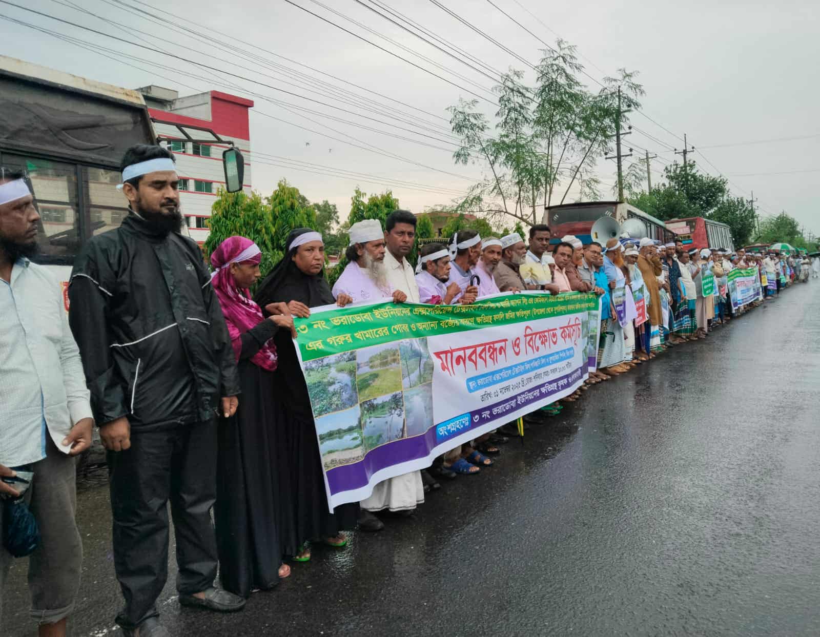 ভালুকায় কাফনের কাপড় পড়ে কৃষকদের বিক্ষোভ ও মানববন্ধন