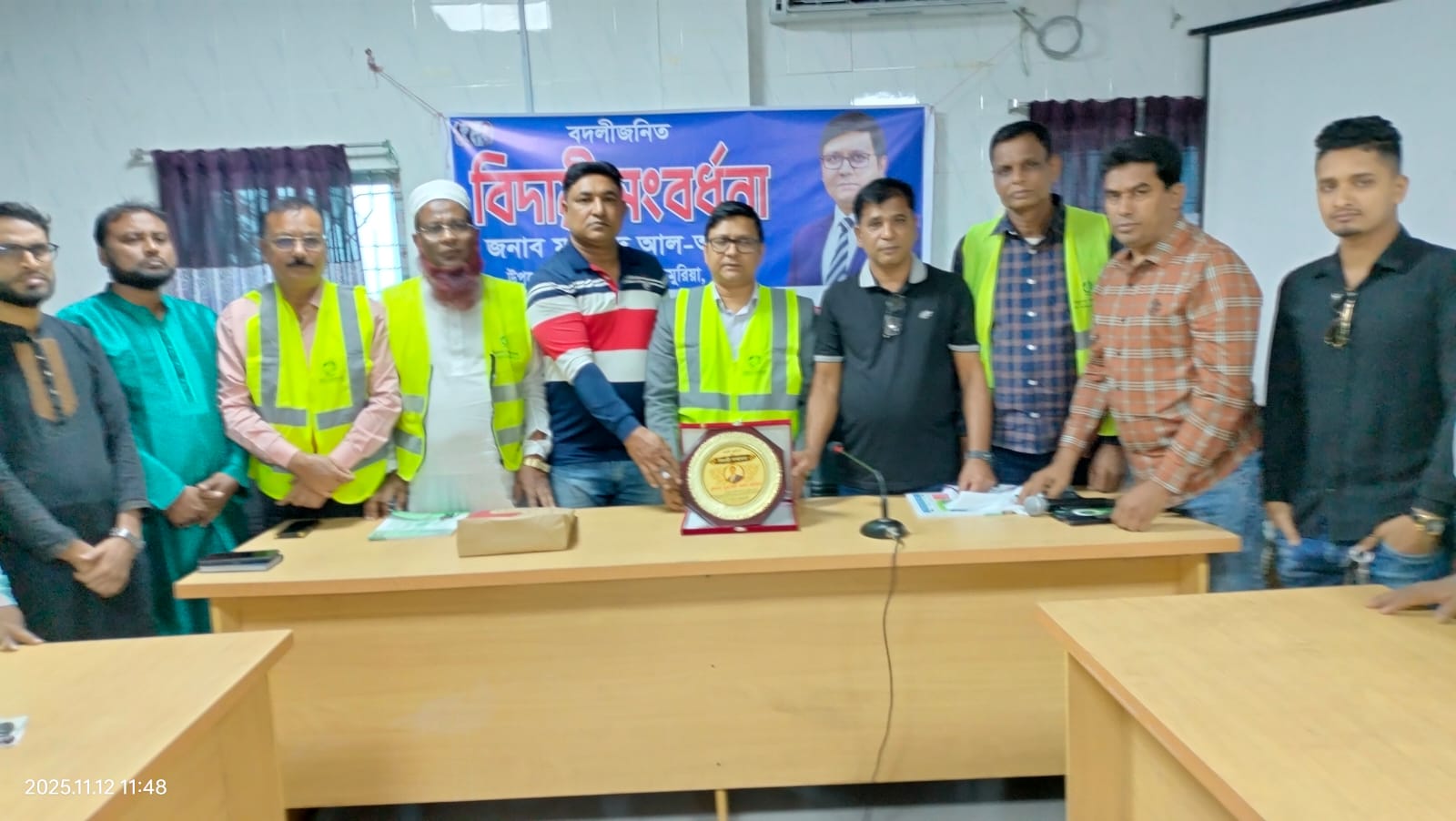 অনুষ্ঠান শেষে বিদায়ী নির্বাহী অফিসারের হাতে সম্মাননা স্মারক হিসেবে ক্রেস্ট তুলে দেন নিসচা ডুমুরিয়া উপজেলা শাখার সড়ক যোদ্ধারা।