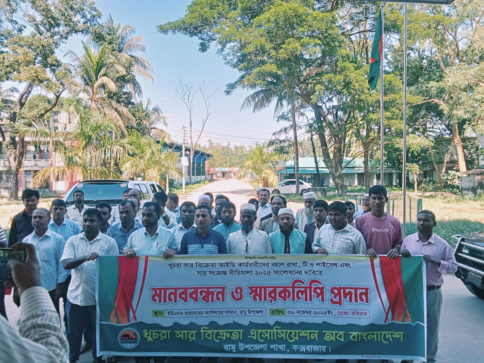 খুচরা সার বিক্রেতা আইডি কার্ডধারীদের বহাল রাখা, ট্রেড অর্গানাইজেশন (টি.ও) লাইসেন্স পুনঃপ্রদান এবং ‘সার সংক্রান্ত নীতিমালা ২০২৫’ সংশোধনের দাবিতে রামুতে মানববন্ধন ও স্মারকলিপি প্রদান করেছে খুচরা সার বিক্রেতা অ্যাসোসিয়েশন অব বাংলাদেশ, রামু উপজেলা শাখা।