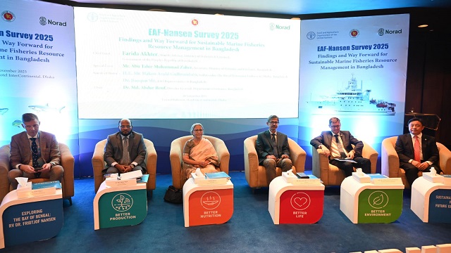 ৩০ নভেম্বর ২০২৫ রবিবার বিকালে হোটেল ইন্টারকন্টিনেন্টালে Ecosystem Approach to Fisheries (EAF)-Nansen Survey 2025 বাংলাদেশে সামুদ্রিক মৎস্য সম্পদ ব্যবস্থাপনার টেকসই অগ্রগতির জন্য জরিপের ফলাফল ও করণীয় বিষয়ক ডি ব্রিফিং এ প্রধান অতিথির বক্তব্যে তিনি এসব কথা বলেন।