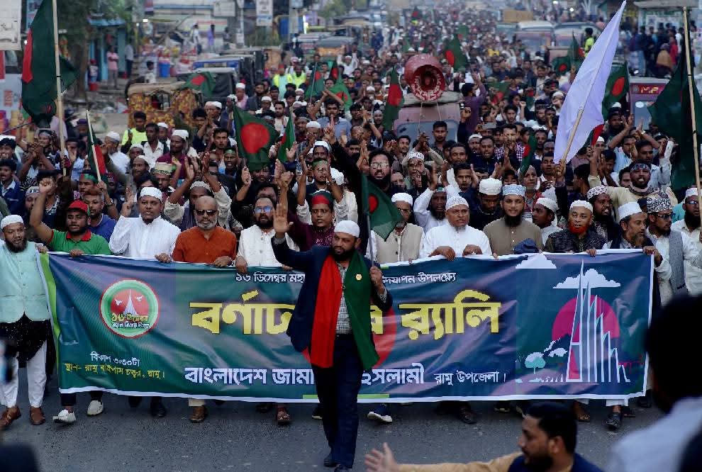 মহান বিজয় দিবস উপলক্ষে রামু উপজেলা জামায়াতে ইসলামীর যুব বিভাগের উদ্যোগে কক্সবাজারের রামুতে বিশাল যুব র্যালি ও র্যালি-পরবর্তী সংক্ষিপ্ত পথসভা অনুষ্ঠিত হয়েছে।