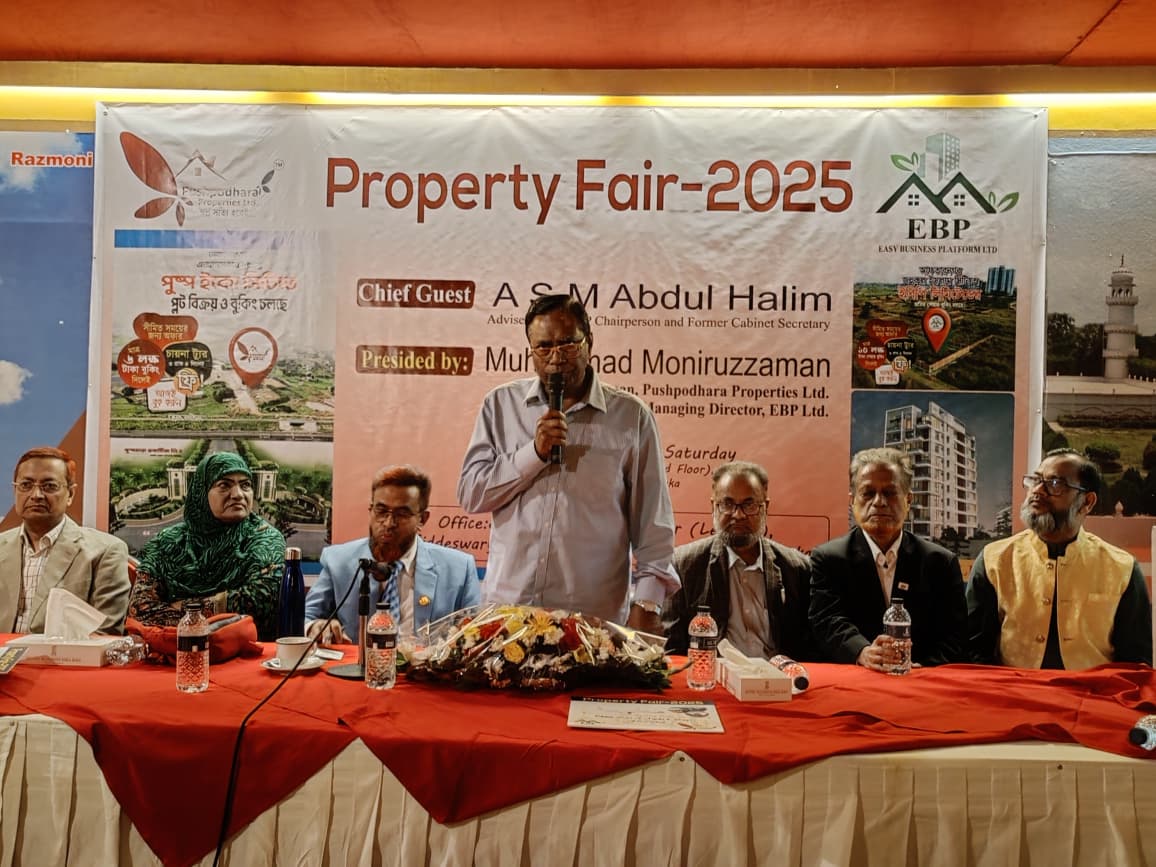 ১৫ নভেম্বর (শনিবার) রাজধানীর রাজমনি ইশাখা হোটেলে ‘পুষ্পধারা প্রপার্টিজ লিমিটেড’ ও ‘ইজি বিজনেস প্লাটফর্ম’ (ইবিপি) কর্তৃক আয়োজিত ‘প্রপার্টি ফেয়ার’ অনুষ্ঠানে এ কথা বলেন সাবেক মন্ত্রী পরিষদ সচিব ও বিএনপির চেয়ারপার্সনের উপদেষ্টা এ এস এম আব্দুল হালিম।