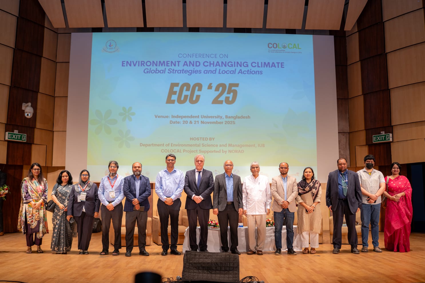 ইনডিপেনডেন্ট ইউনিভার্সিটি, বাংলাদেশ (আইইউবি) এবং কোলোকাল প্রকল্পের যৌথ উদ্যোগে আয়োজিত দুই দিনের আন্তর্জাতিক সম্মেলন ‘এনভায়রনমেন্ট অ্যান্ড চেঞ্জিং ক্লাইমেট ২০২৫’ শেষ হয়েছে শুক্রবার ২১ নভেম্বর ২০২৫। ‘জলবায়ু পরিবর্তন মোকাবিলায় বৈশ্বিক কৌশল ও স্থানীয় বাস্তবতার সমন্বয়’- এই উপপাদ্যকে সামনে রেখে আলোচনায় অংশ নেন দেশি-বিদেশি গবেষক, উন্নয়নকর্মী, শিক্ষার্থী ও বিভিন্ন অঞ্চলের স্থানীয় প্রতিনিধিরা।