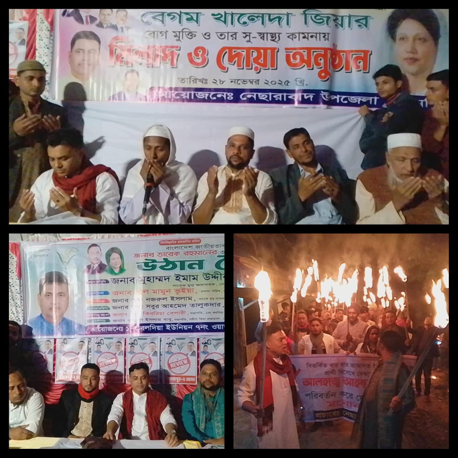 নেছারাবাদে বিএনপির একাংশের মিলাদ, দোয়া, লিফলেট বিতরণ ও মশাল মিছিল