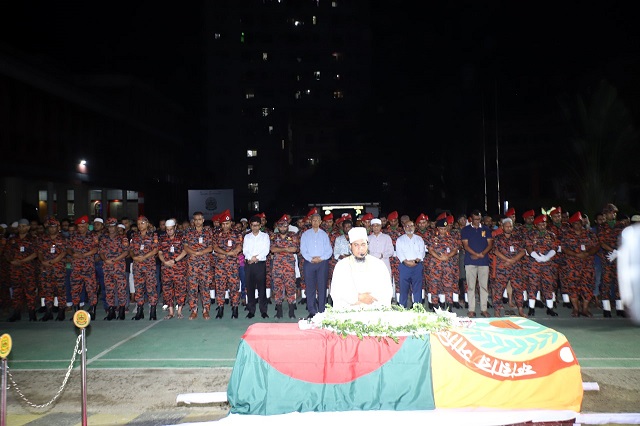 নিহত ফায়ার ফাইটার শামীম আহমেদের জানাজায় স্বরাষ্ট্র উপদেষ্টার অংশগ্রহণ