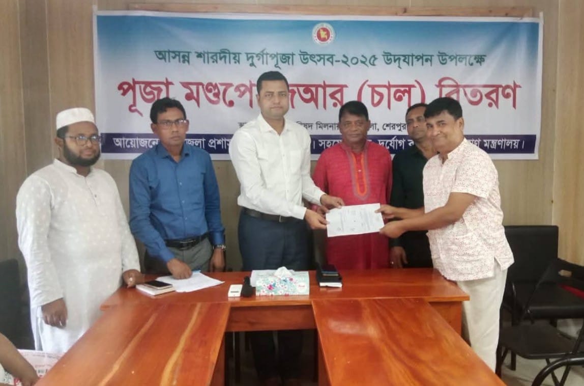 নকলার ২০ পূজামন্ডপে সরকারি চাল অনুদান