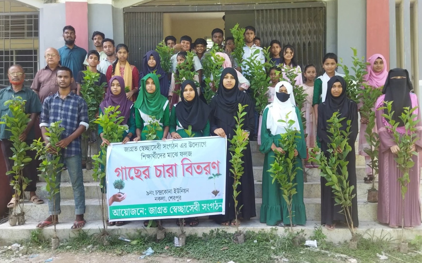 নকলায় ৫শত শিক্ষর্থীর মাঝে চারা বিতরণ করেন `জাগ্রত স্বেচ্ছাসেবী সংগঠন'